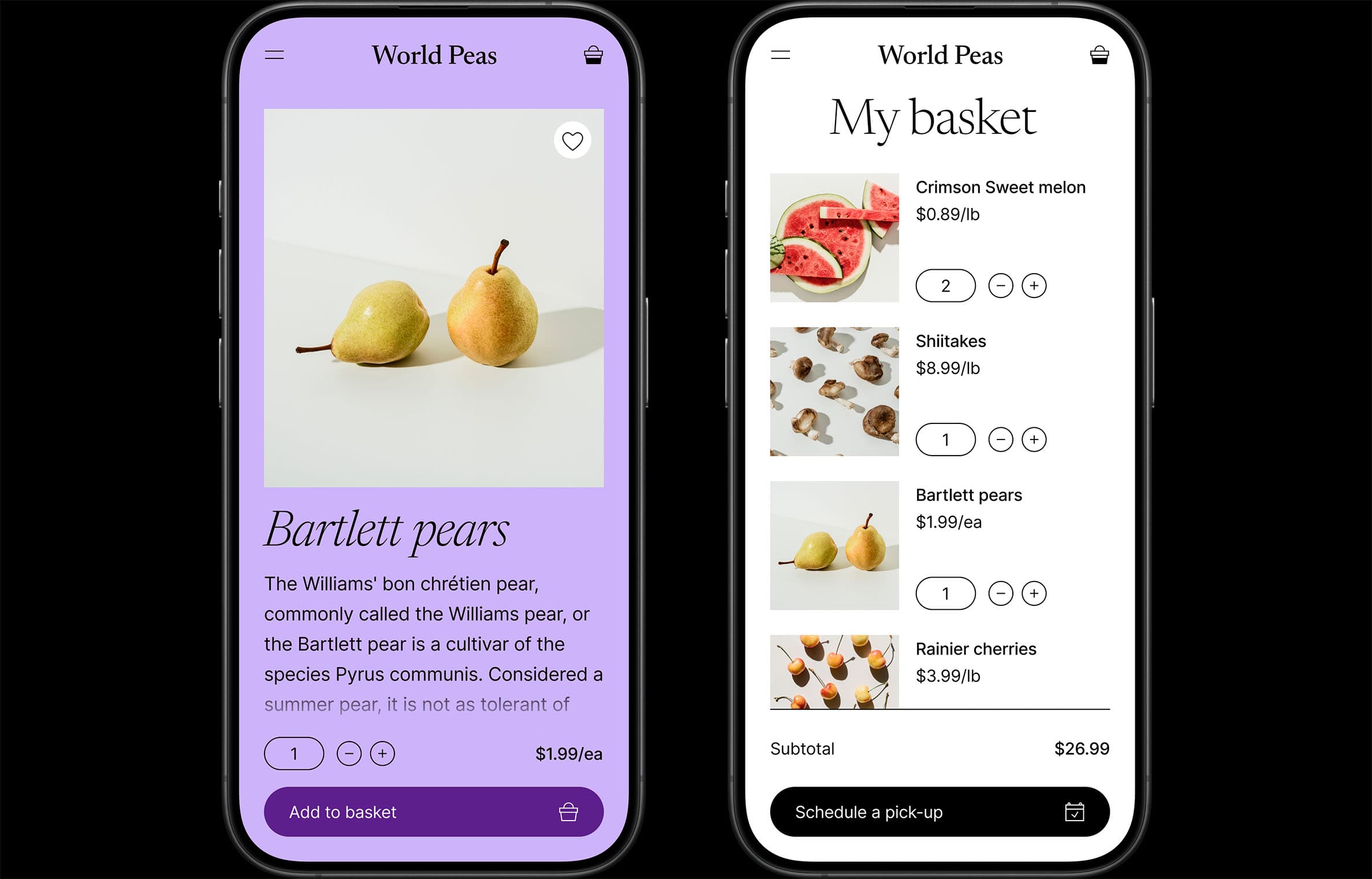 Working with design manager, Taryn Cowart, we began by revisiting World Peas, a grocery app originally conceptualized and designed by Andy Luce and the brand team.